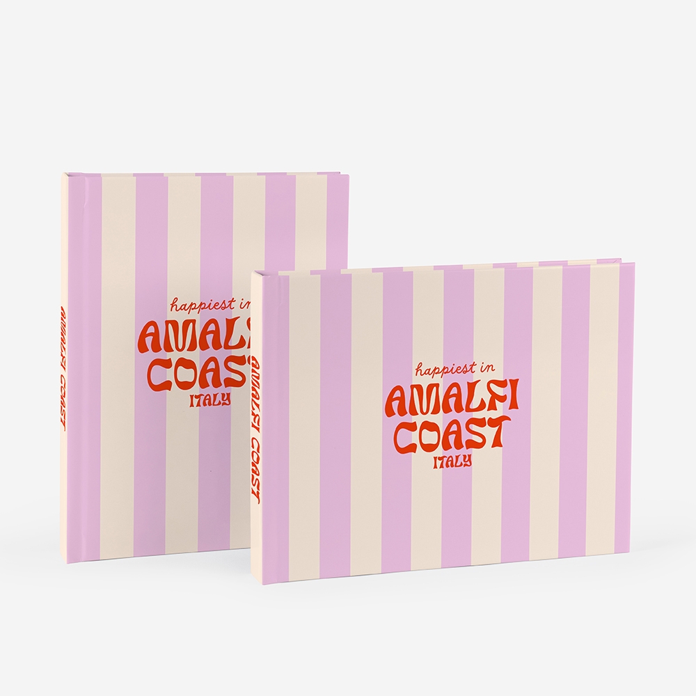 Os Álbuns Analógicos em Linho com Janela são compostos por páginas para colares as fotos com stickers.
