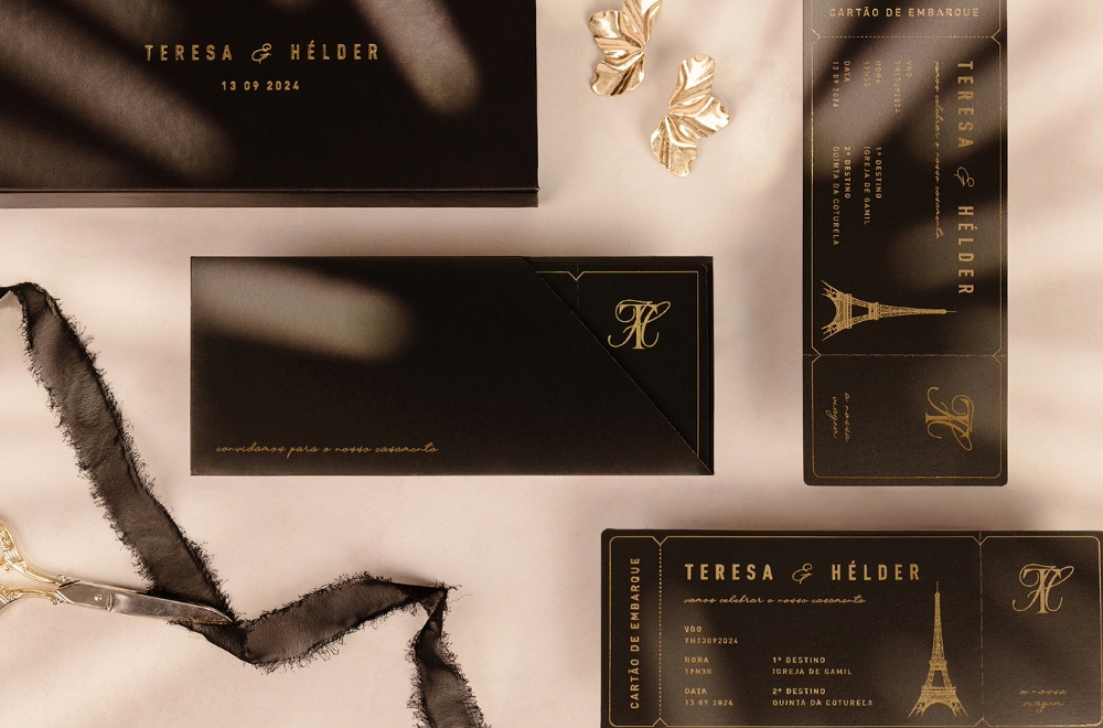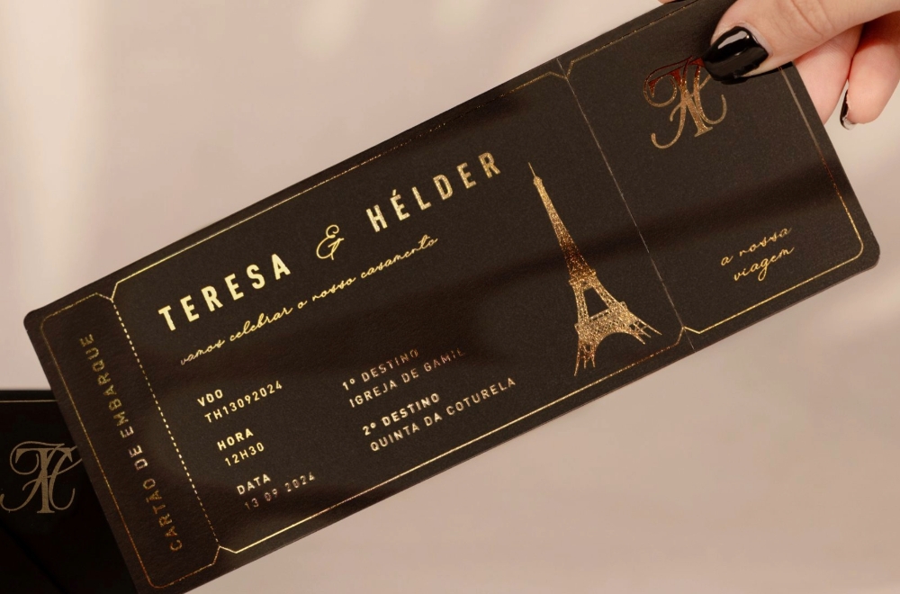 Por exemplo, se estivermos a falar de um casamento na praia, tens de garantir que elementos do oceano e da natureza não podem faltar no teu convite. Ou então, se vocês são um casal de viajantes aventureiros, podem ser criativos ao ponto de transformar o vosso convite de casamento numa espécie de bilhete de viagem, que neste caso, é a viagem do vosso amor.
